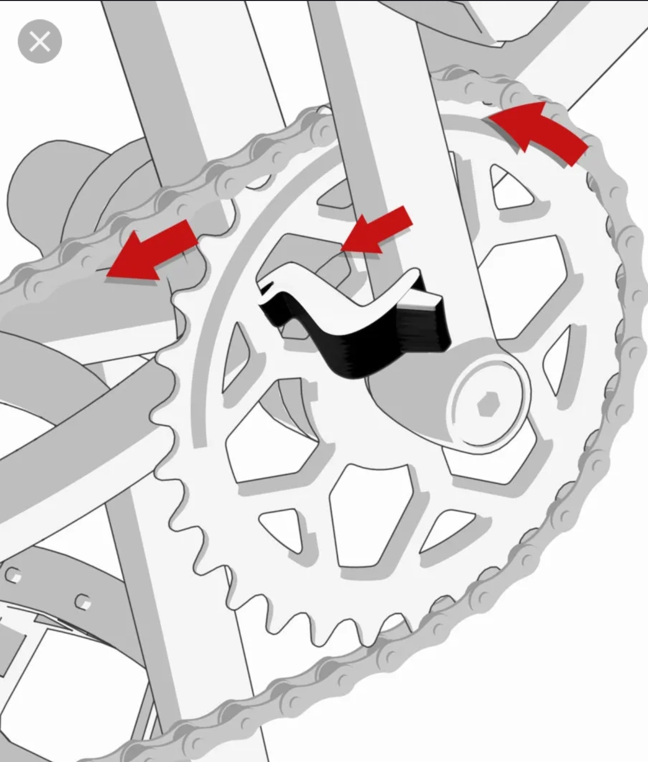 - Somit wird die Kette beim Zurückdrehen der Kurbel mitgenommen