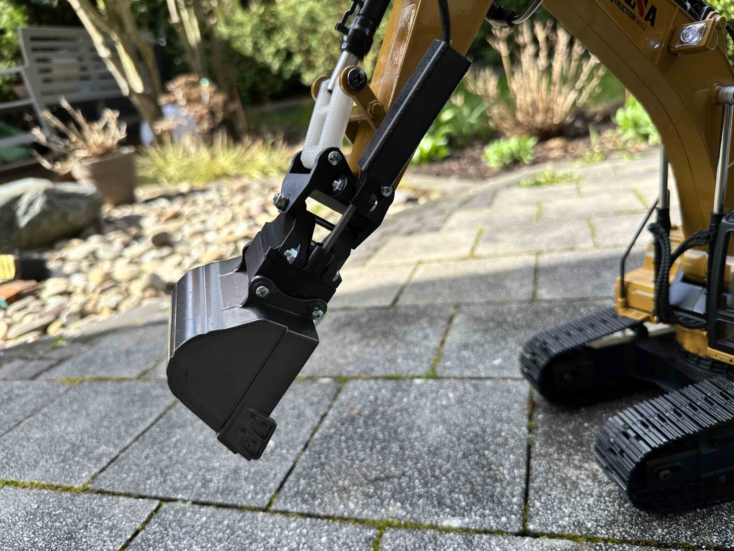 Das Tilt/Schwenkmodul wir direkt an den Bagger montiert und somit lassen sich alle Anbauteile, Wurzelrechen, versch. Löffel, Planierbalken etc. schwenken.