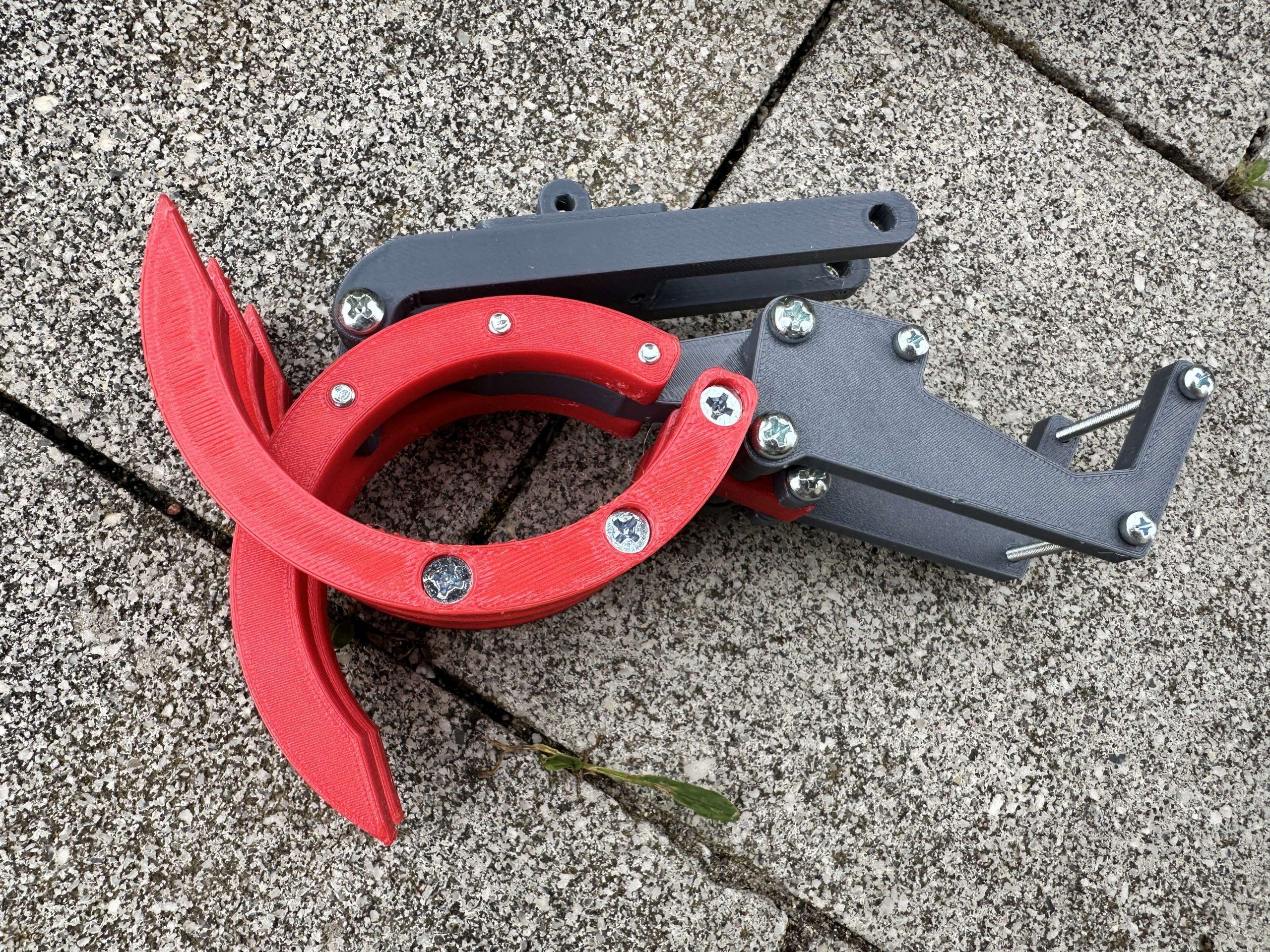 Bei dem Holfgreifer bwegen sich beide Zangen, so dass ein Öffnungsmaß von 17cm entsteht. -> Für sehr größe Baumstämme