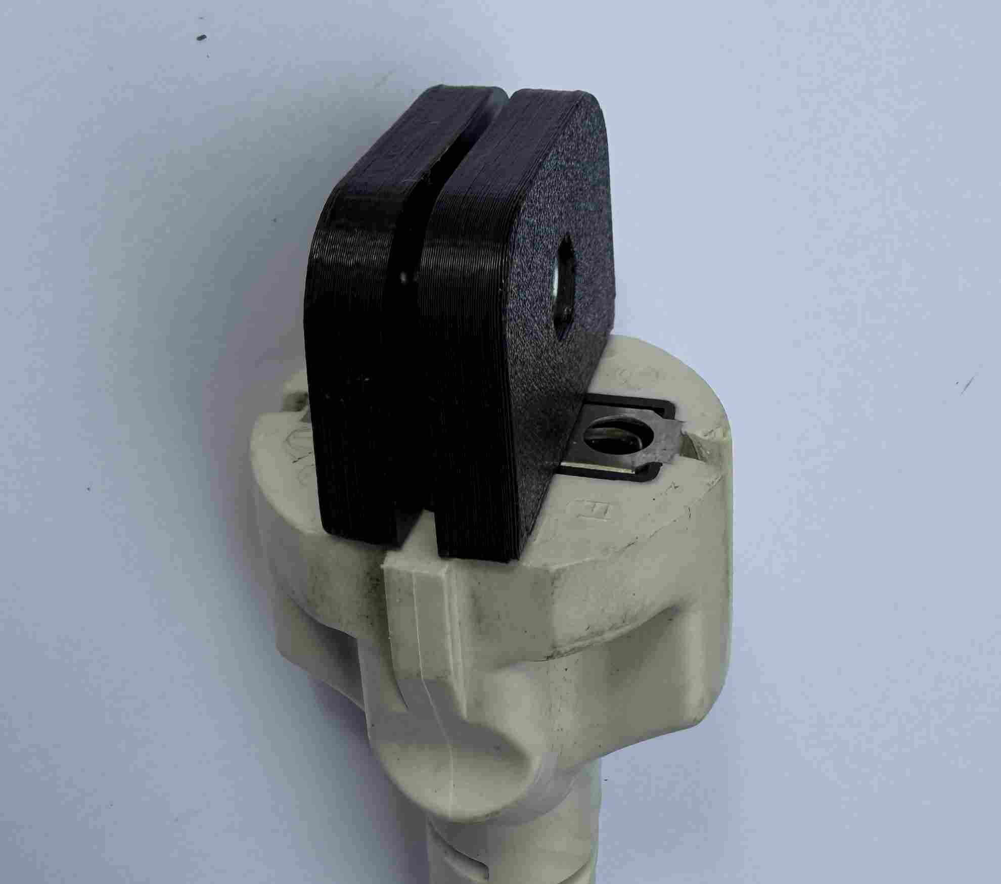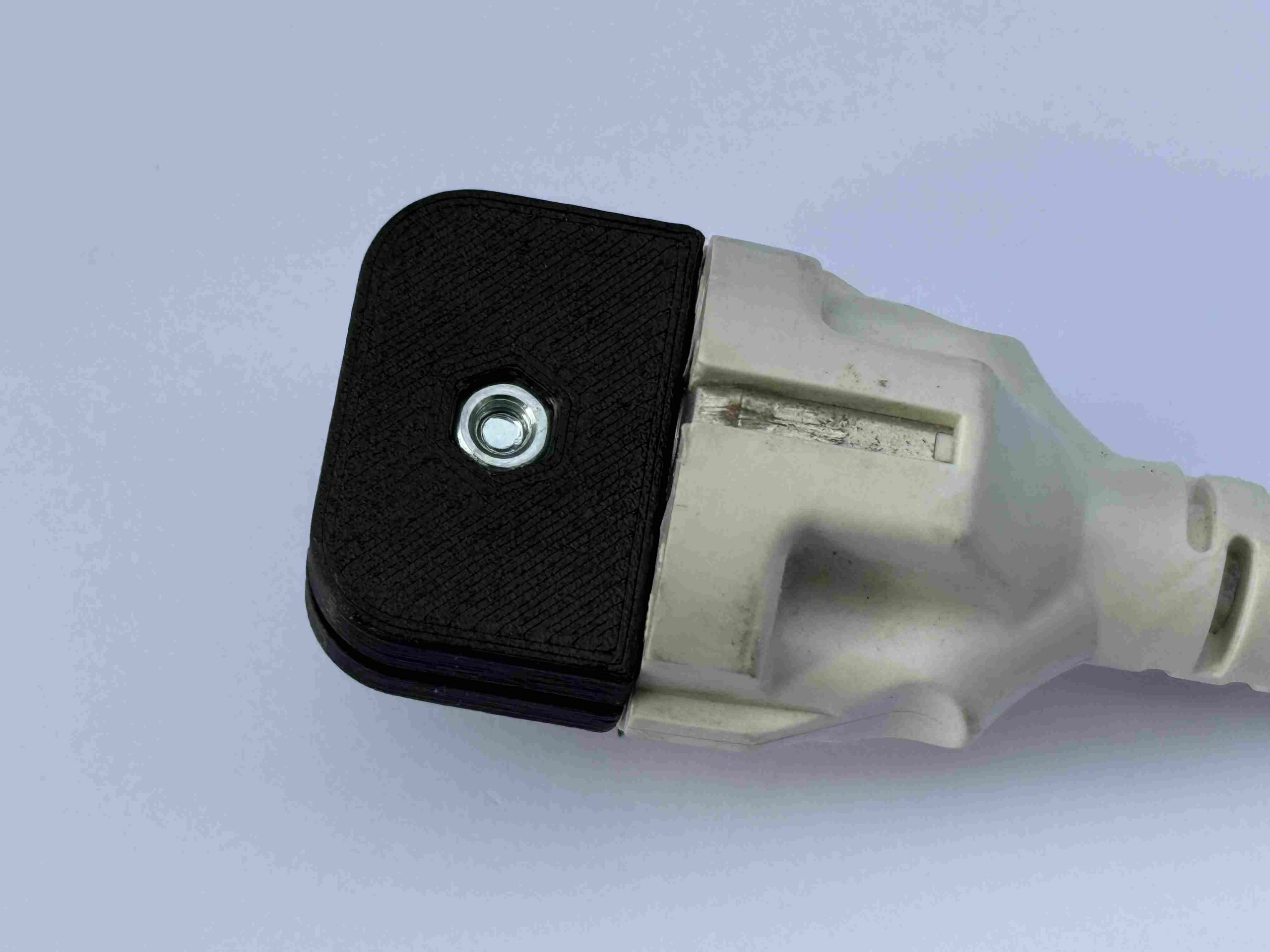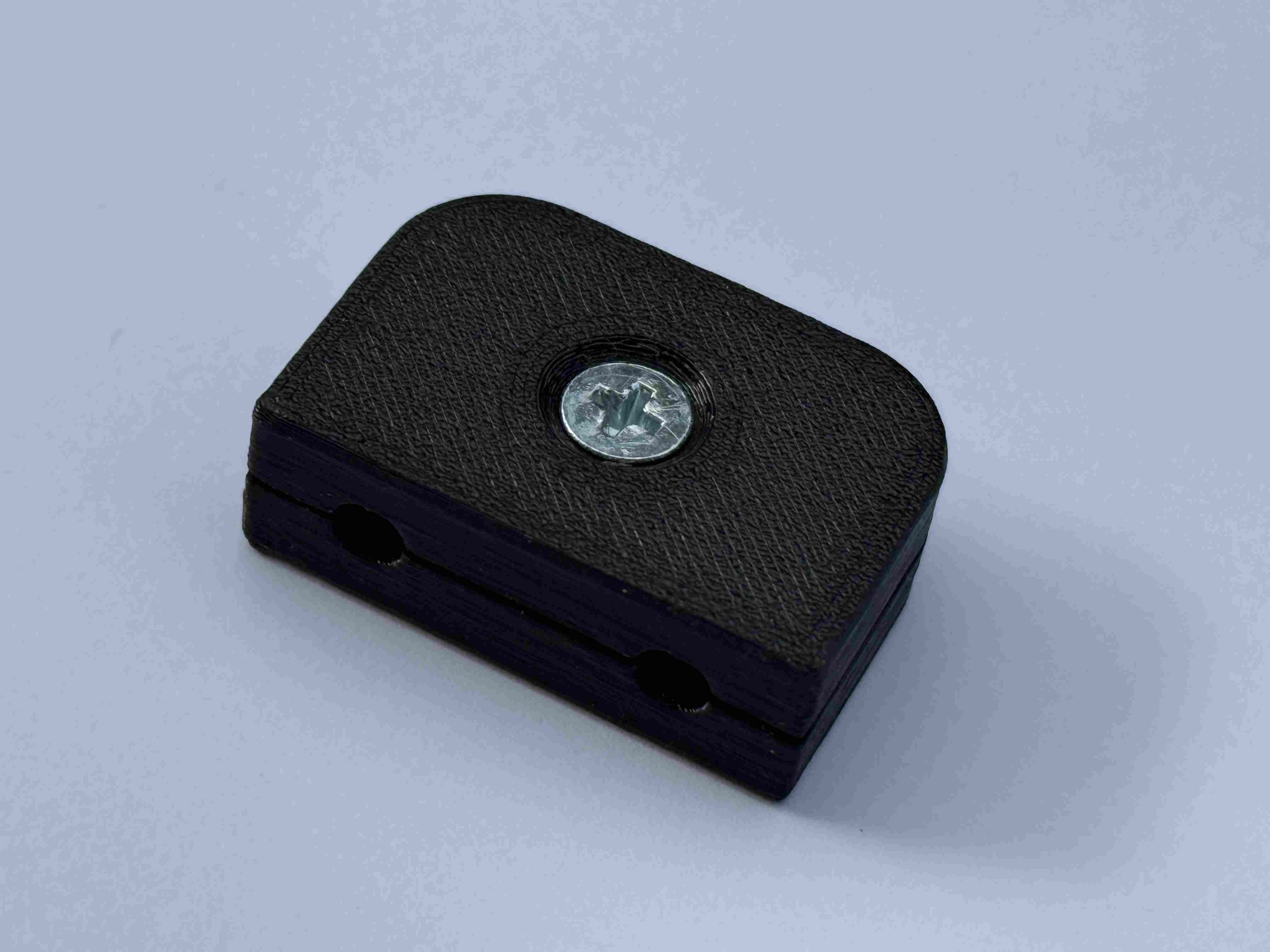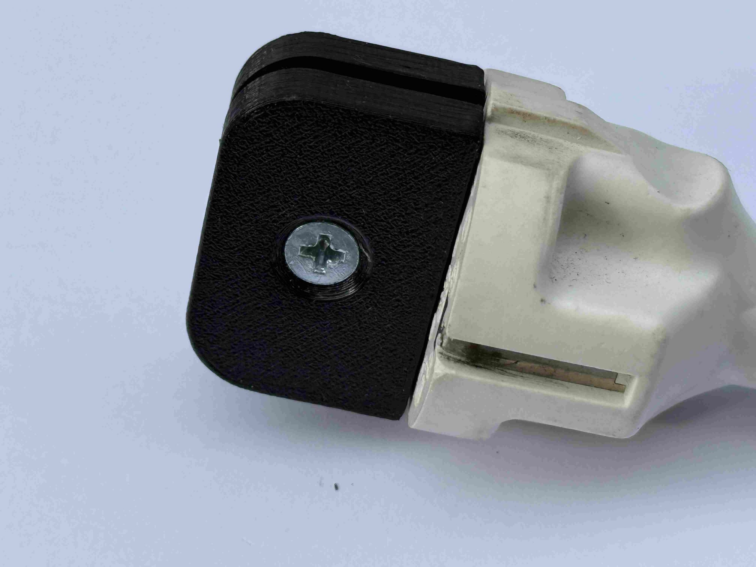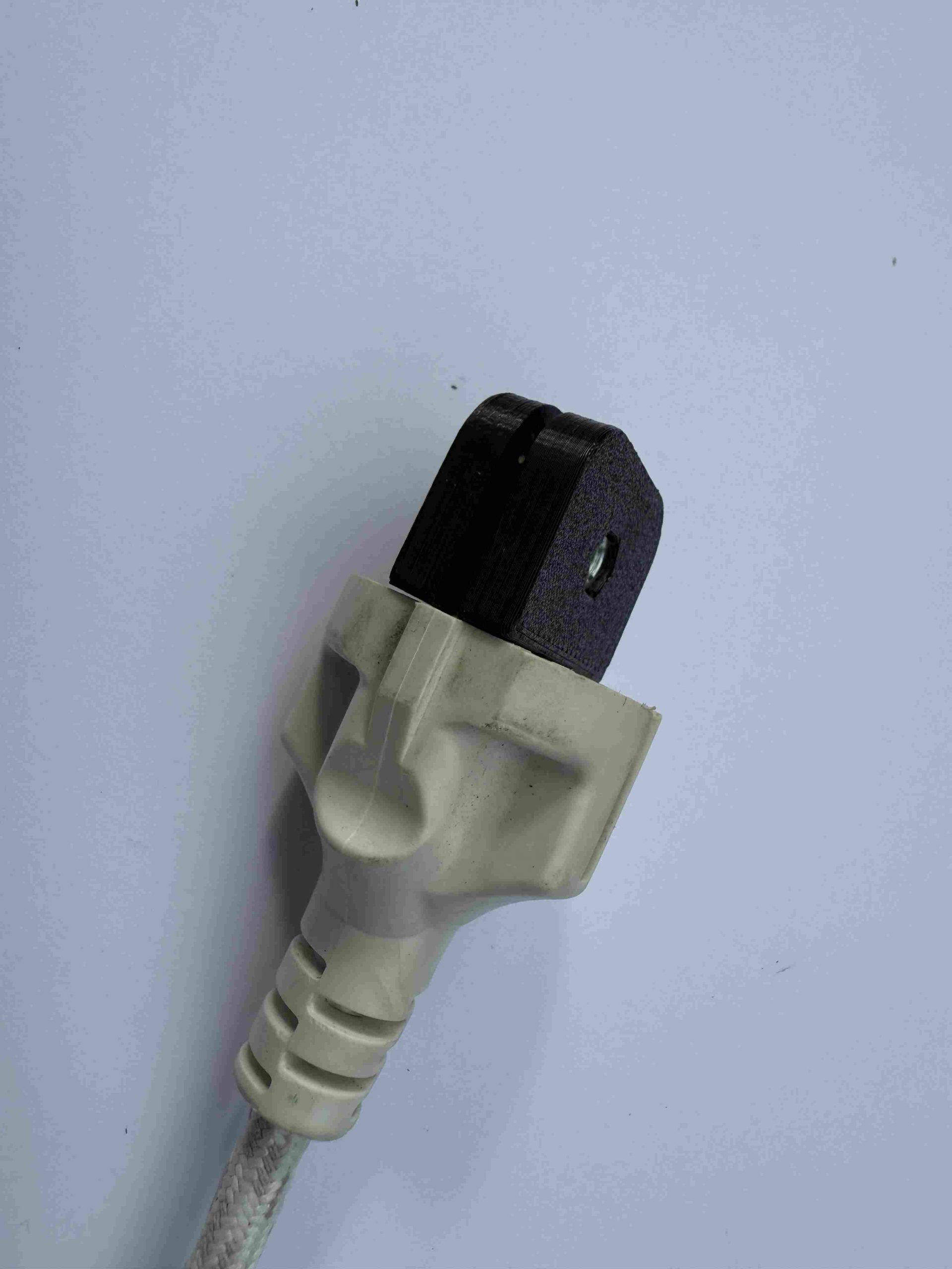Stecker Safe wird mit einer Schraube vorne auf den Stecker geschraubt.